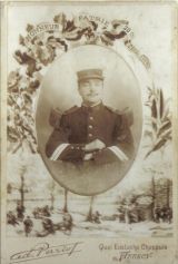 Prosper et Julia ont déjà deux enfants (Jean Pierre et Albert) lorsque la guerre éclate. La photo nous montre un bien beau militaire, même si elle est (mal) retouchée au niveau de la coiffure. La photo d'origine montrait notre grand père avec sa casquette réglementaire. Pour un portrait de famille, des cheveux, c'est mieux, non? Illustration: